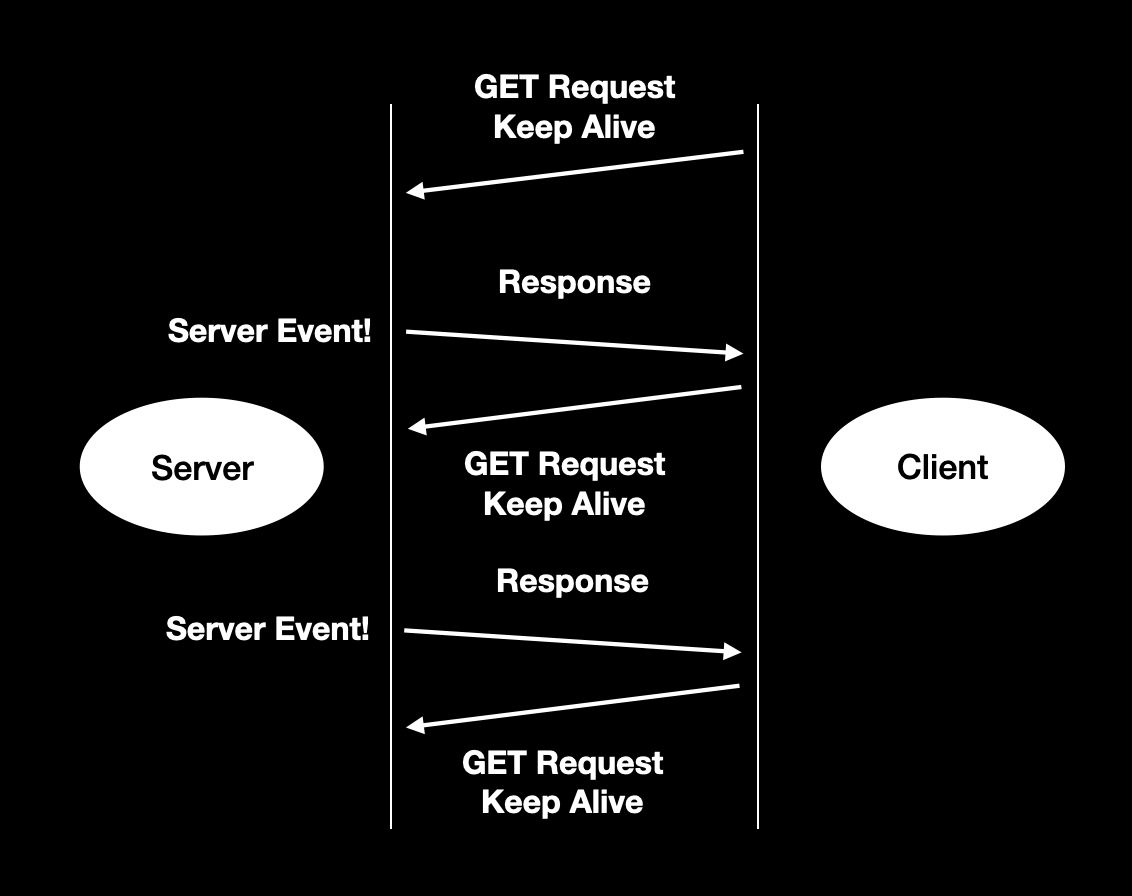 - 응답을 받은 Client는 다시 동일한 GET request를 보내며 다음 응답을 기다립니다.